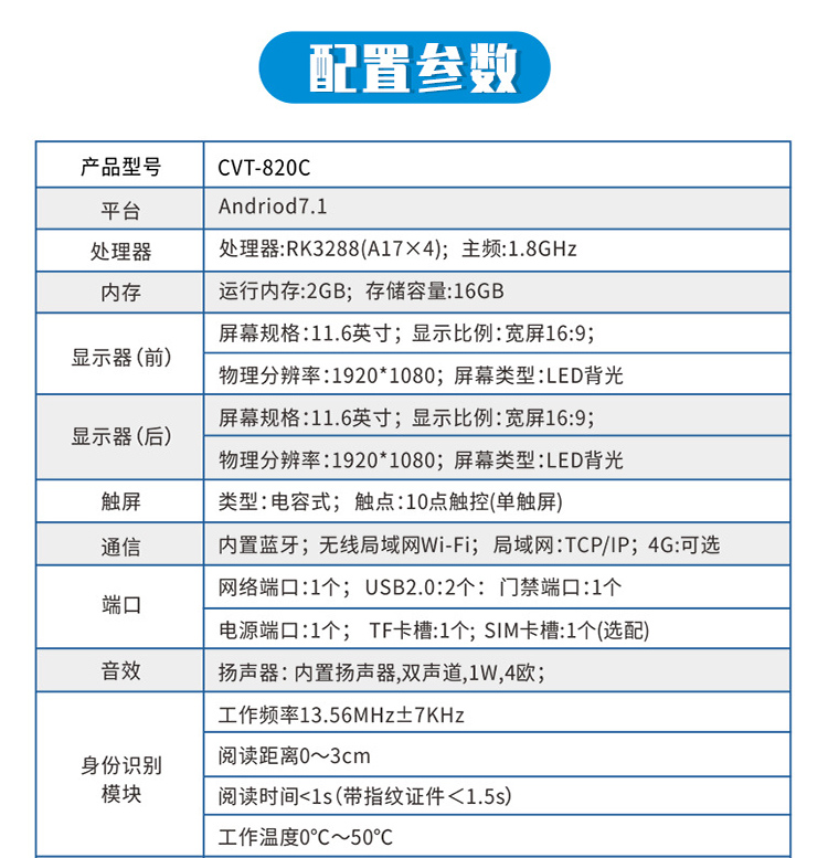 (*由于產(chǎn)品升級或其他原因,華視cvt-820c雙屏訪客機產(chǎn)品實際參數(shù)有可能變更,以實際產(chǎn)品為準。本文中的所有陳述、信息和建議也不構(gòu)成任何明示或暗示的擔保)