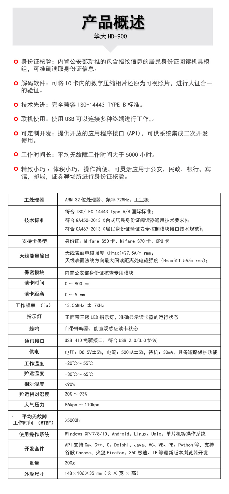 (*由于產(chǎn)品升級或其他原因,華大身份證讀卡器產(chǎn)品實際參數(shù)有可能變更,以實際產(chǎn)品為準(zhǔn)。本文中的所有陳述、信息和建議也不構(gòu)成任何明示或暗示的擔(dān)保)